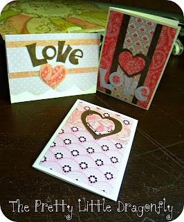 So I bought another scrapbook stack today (I own quite a few...I can't help it! They're so pretty!) and it happens to be very pink and glittery so I figured I'd make some Valentines Day cards with it! I still have the flu and am very tired so settling down at my desk with some pretty papers seems the perfect things to do. The photo came out a little yellow there but they really do look very nice! I'll just keep card making until I run out of double sided tape! (Then go out and buy more! haha!)